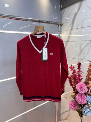Lacost e Red Premium Imported V Neck Knitted Pullover with Embroidered Logo 3504