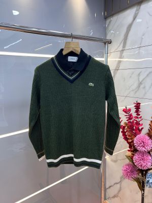 Lacost e Green Premium Imported V Neck Knitted Pullover with Embroidered Logo 3503