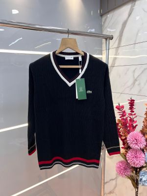 Lacost e Black Premium Imported V Neck Knitted Pullover with Embroidered Logo 3499