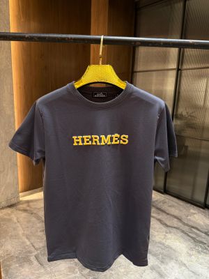 HERMES NAVY BLUE YELLOW PRINTED ROUND NECK OVERSIZED TSHIRT STORE ARTICLE