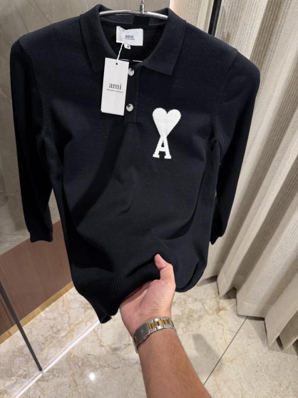 Home T-Shirts Ami Paris Black Knitted Polo Full sleeves IMPORTED