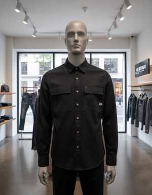 Gsta r Black Premium Shirt Cotton Fabric With custom Branded Button Tagging And Brand Poly Bag 3151