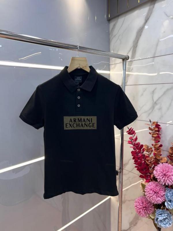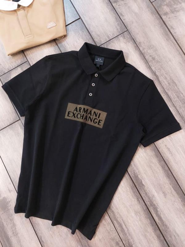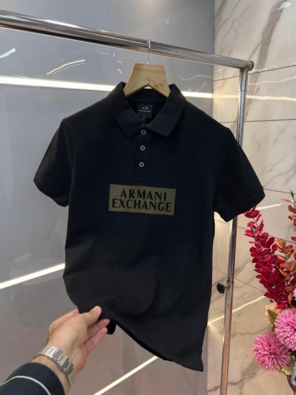 Home T-Shirts Arman i Exchange Black Premium Cotton Lycra Pique fabric Polo Tshirt with Printed Logo 3120