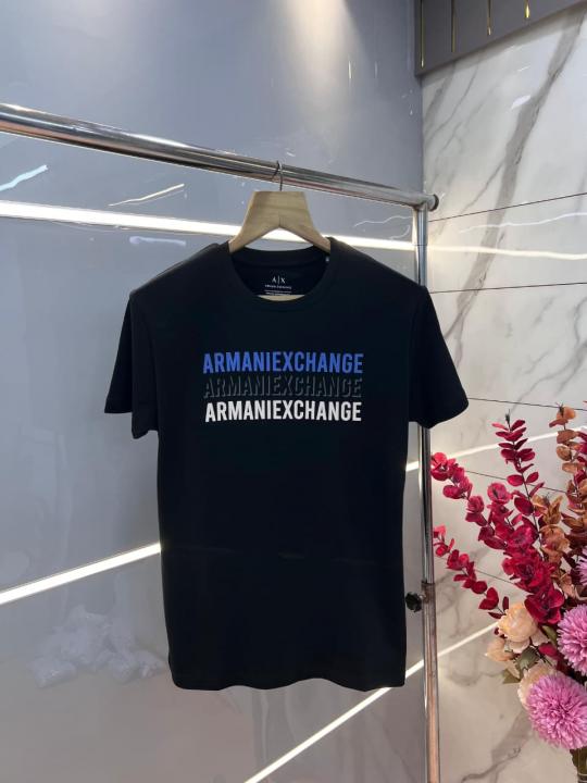 Home T-Shirts Arman i Exchange Black Premium Imported 240 GSM Interlock Fabric Round Neck Printed Logo Tshirt 3020