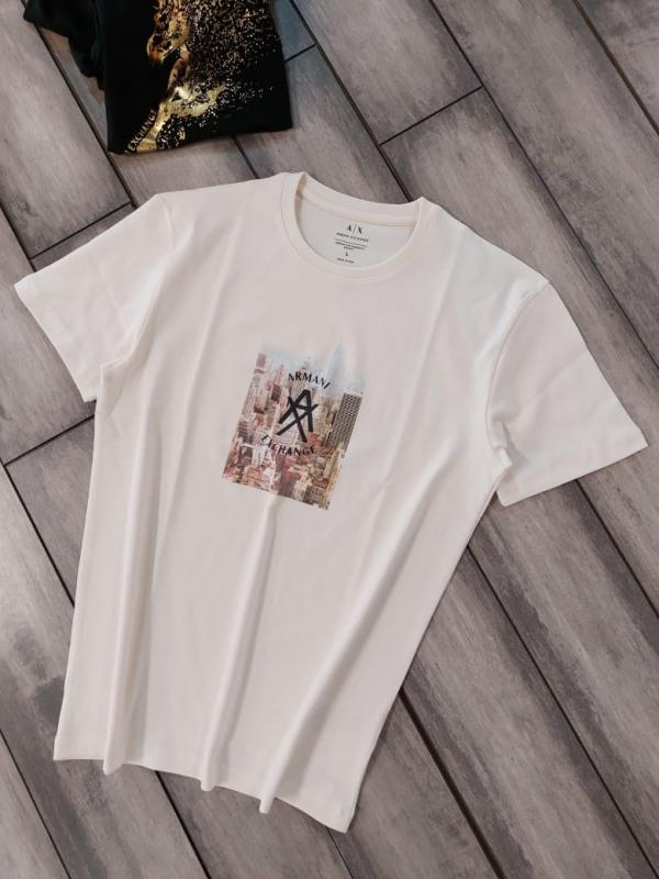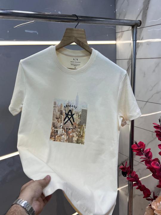 Arman i Exchange White Premium Imported 240 GSM Interlock Fabric Round Neck Printed Logo Tshirt 3018