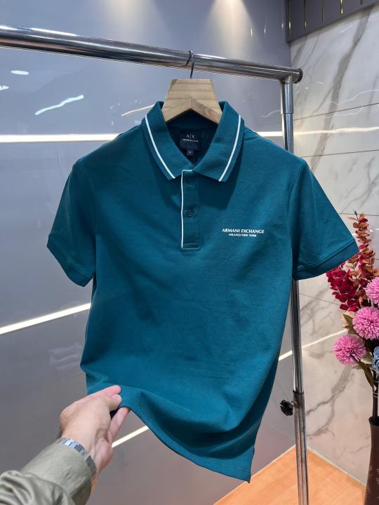 Home T-Shirts Arman i Exchange Green Premium Cotton Lycra Pique fabric Polo Tshirt with Collar and Emboss Logo 3162