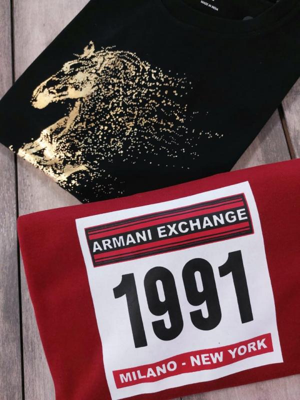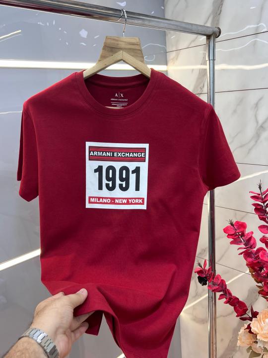 Home T-Shirts Arman i Exchange Red Premium Imported 240 GSM Interlock Fabric Round Neck Printed Logo Tshirt 3321