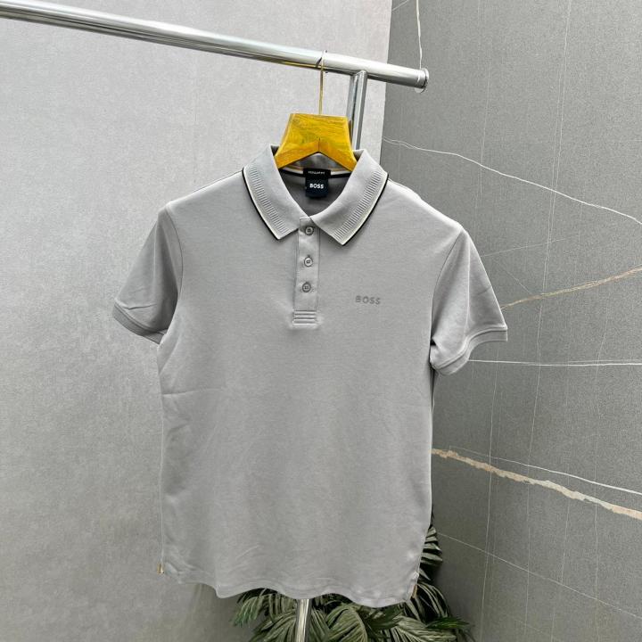 Home T-Shirts Bos_s Grey Premium Polo Neck Tshirt 528