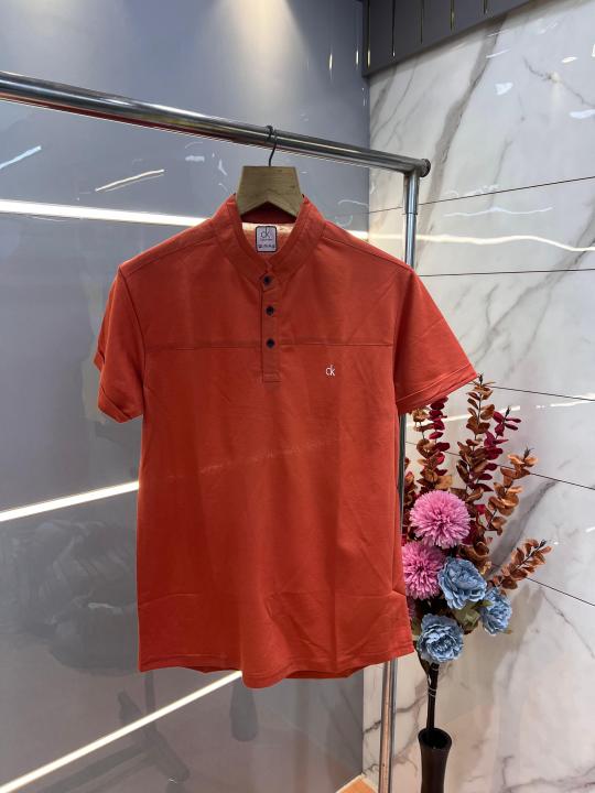 Calvin Klei n Premium Imported Fabric Chinese Collar Emboss Logo Tshirt 3139