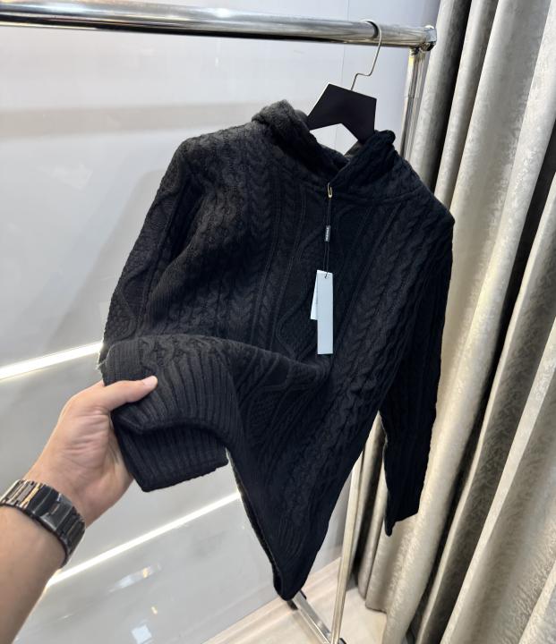 Home Hoodies Essential Black Knitted Imported Knitted Hoodie