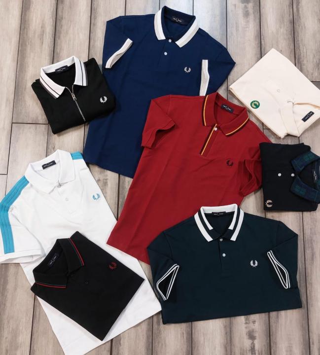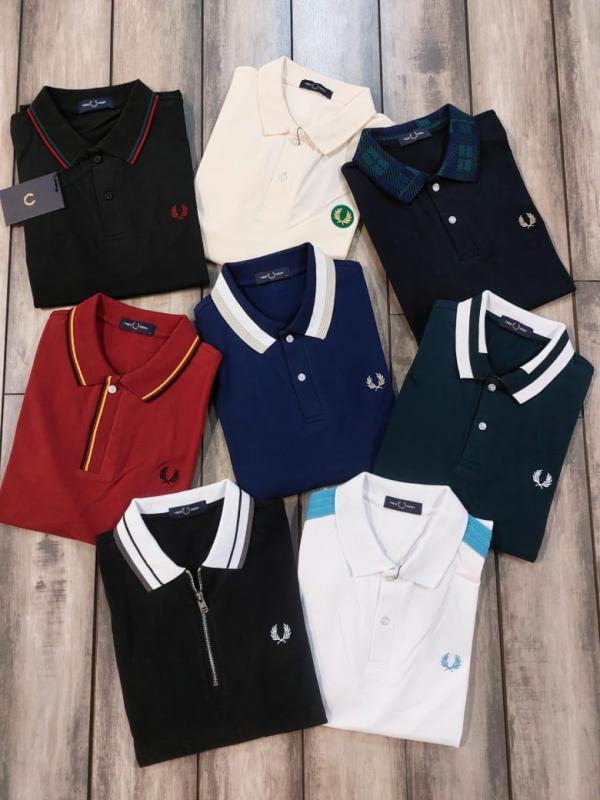 Fred Perr y Cream Premium Cotton Lycra Pique fabric Polo Tshirt with Sleeves Design and Embroidered Logo 3378