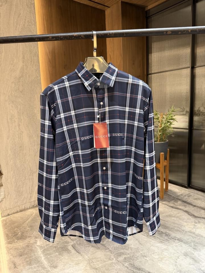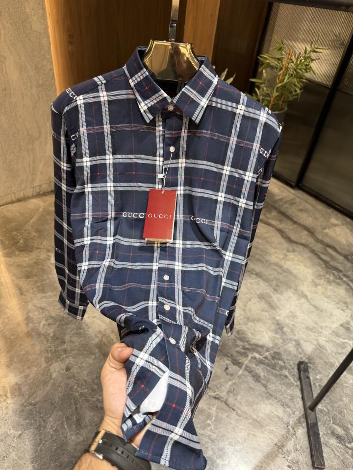 GUCC_I GG BLUE CHECKS PREMIUM QUALITY SHIRTS