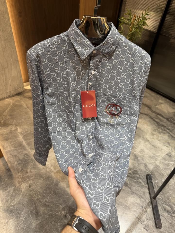 GUCC_I GG GREY MONOGRAM FULL PRINTED LIGHTWEIGHT SHIRT