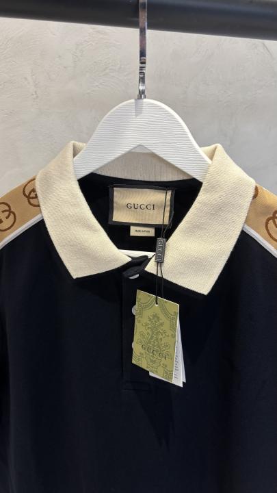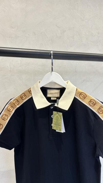 Gucc_i Signature GG Trim Polo T-Shirt Black 1030