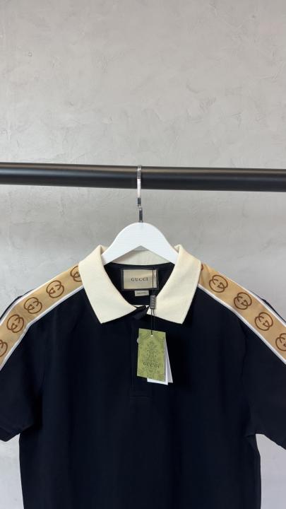 Gucc_i Signature GG Trim Polo T-Shirt Black 1030