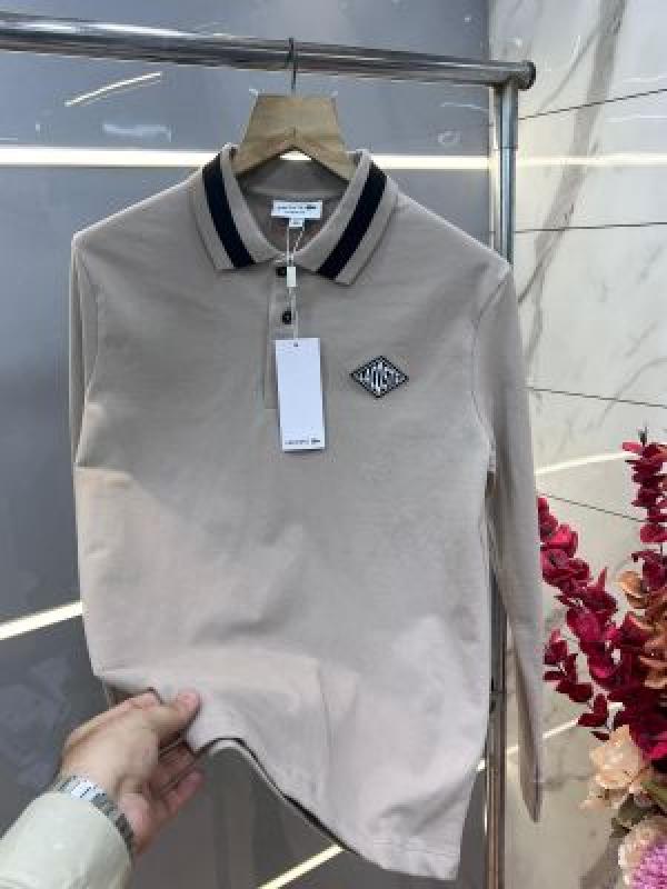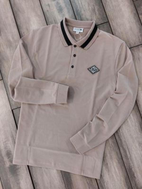 Lacost e Beige Premium Cotton Lycra Pique fabric Polo Full Sleeves Tshirt with Collar Design and Patch Logo 3292