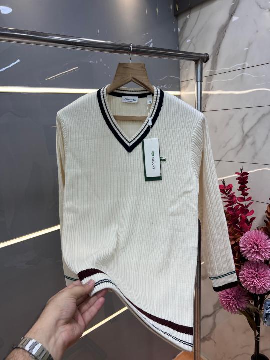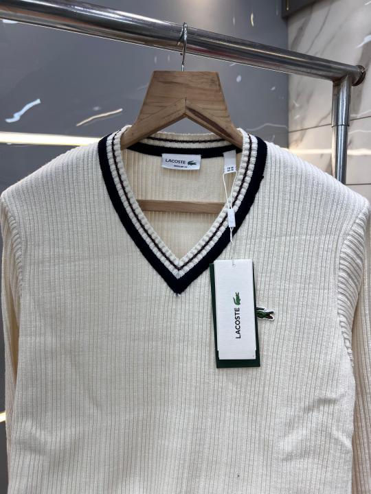 Home Premium sweatshirts Lacost e Cream Premium Imported V Neck Knitted Pullover with Embroidered Logo 3505