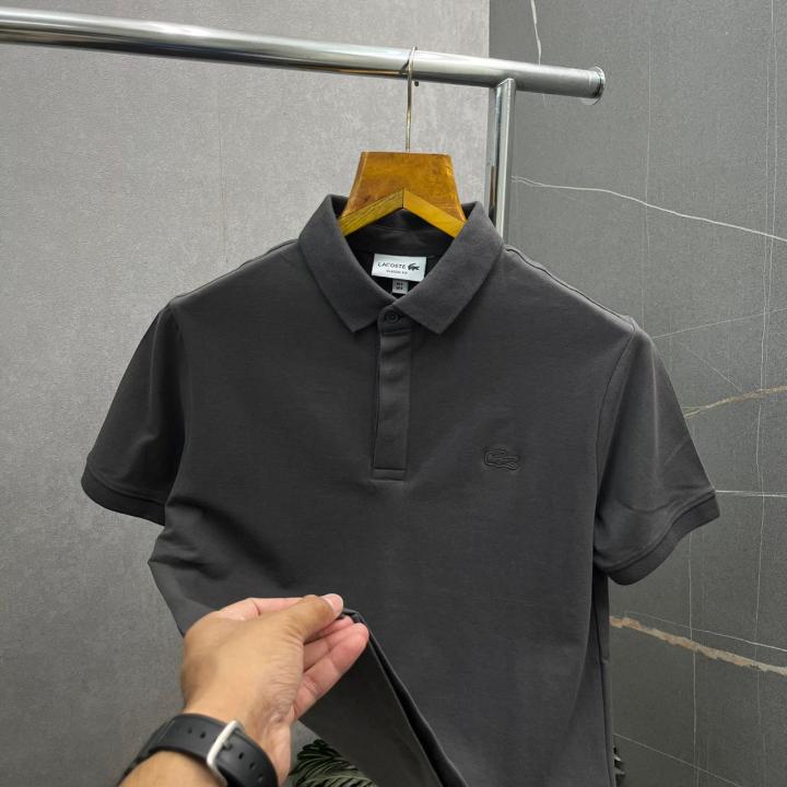 Lacost_e Dark Grey Solid Premium Polo Tshirt 521