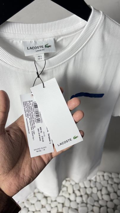 Home T-Shirts Lacost_e Drip Logo White T-Shirt 1234