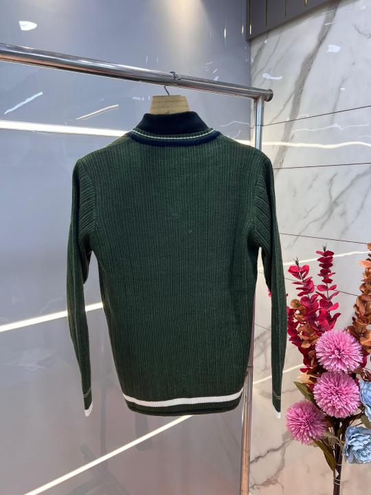 Lacost e Rama Green Premium Imported V Neck Knitted Pullover with Embroidered Logo 3501