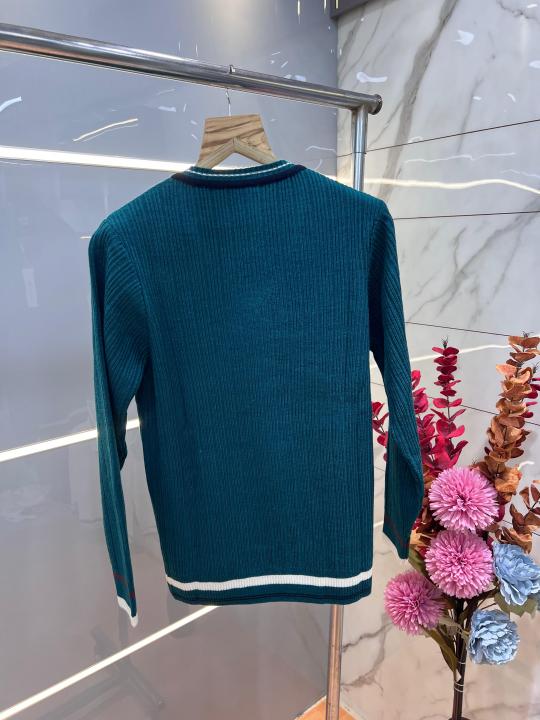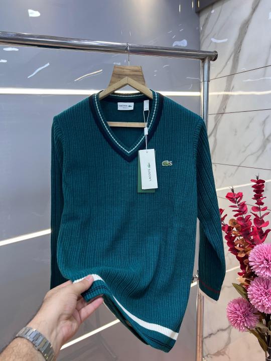 Lacost e Green Premium Imported V Neck Knitted Pullover with Embroidered Logo 3503