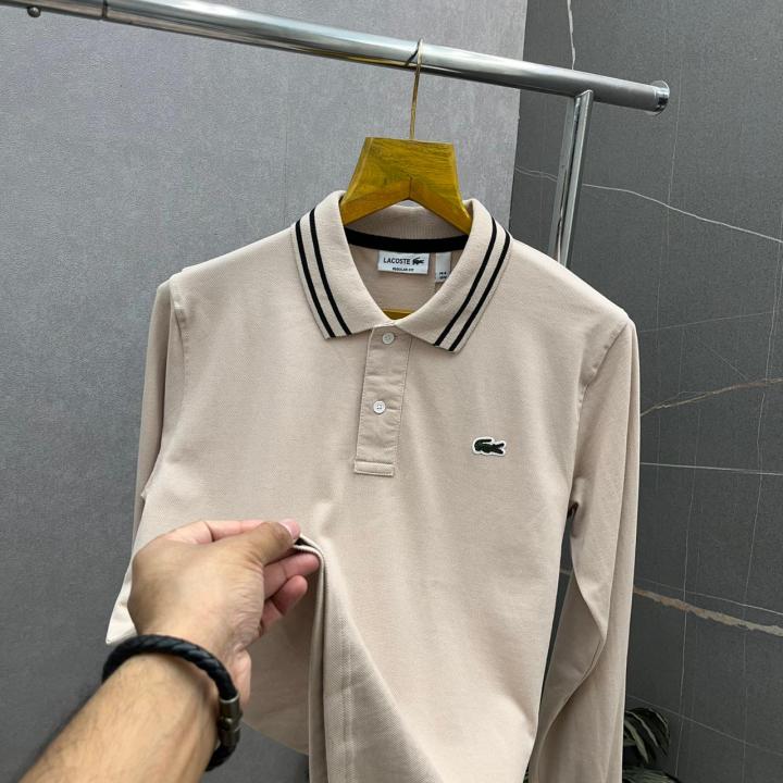 Home T-Shirts Lacost_e Sand Premium Polo Full Sleeves Tshirt 498