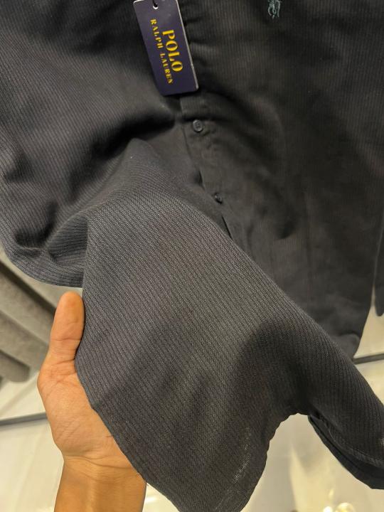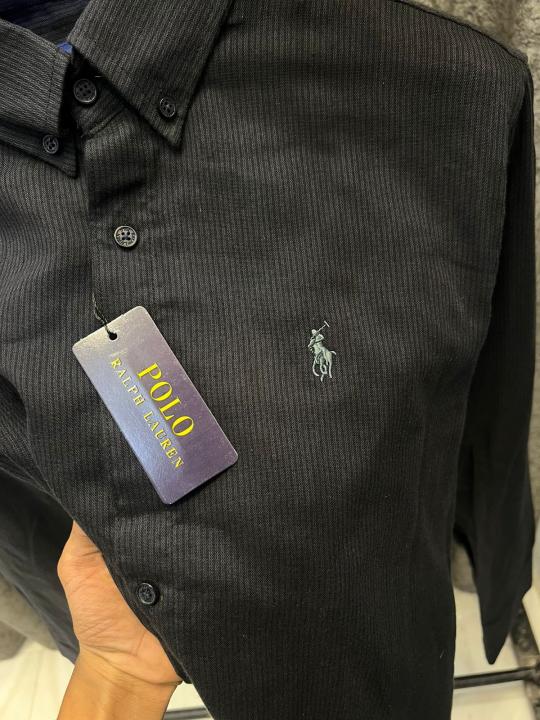 RALP-H L-AUREN P-OLO IMPORTED STORE ARTICLE SHIRT BLACK AND GREY