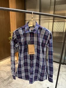 BURBERR_y DARK BLUE WHITE CHECKS CLASSIC PRINTED PREMIUM SHIRT