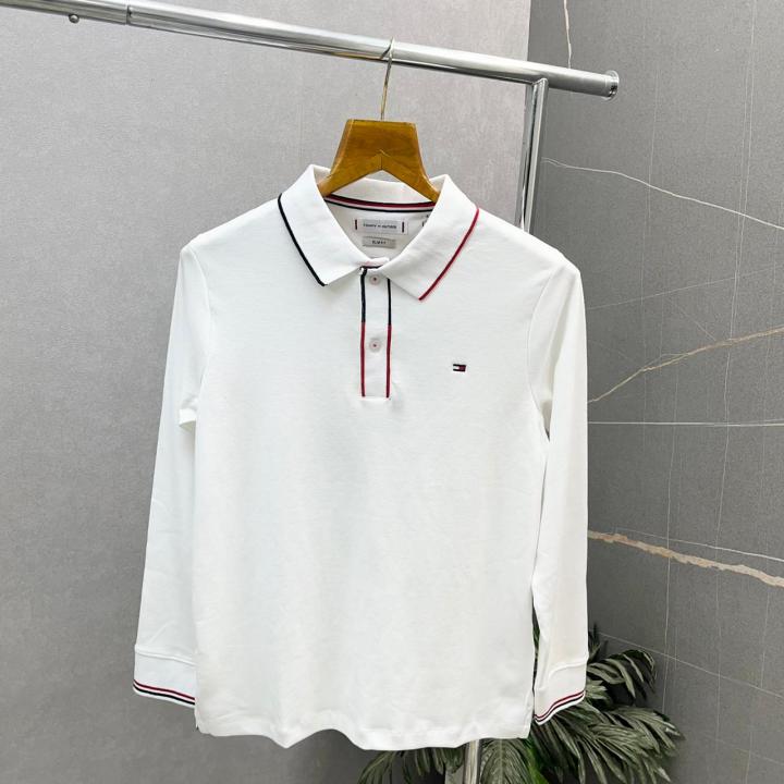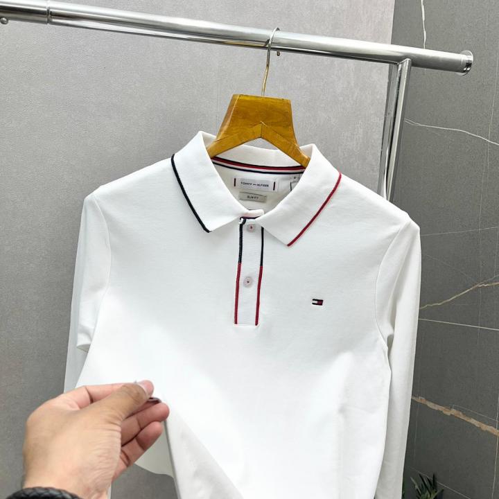 Home T-Shirts Tomm_y Hilfiger White Premium Polo Full Sleeves Tshirt 500