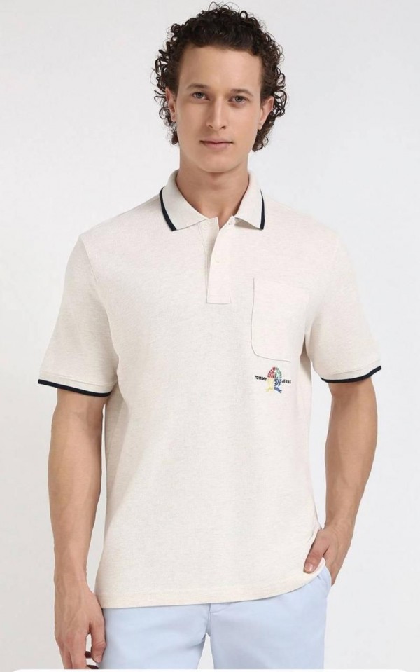 Tommy Hilfige r Beige Premium Polo TShirt with 240 gsm interlock cotton lycra fabric with Emboss Logo 1969
