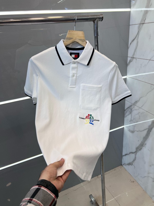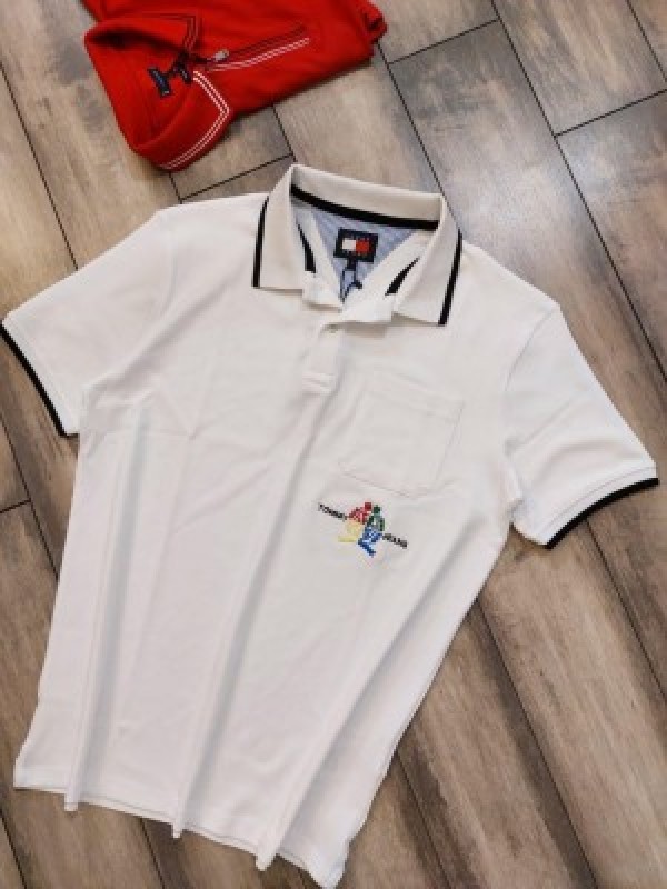 Tommy Hilfige r Premium Polo With Embroidery Design Imported Pocket Style White 2056